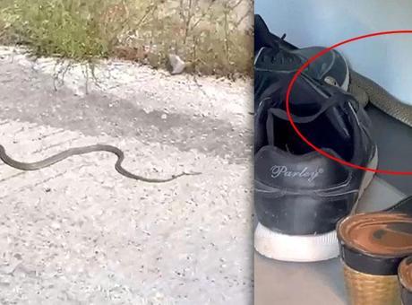 Yer: Burdur! Metrelerce uzunluktaki yılanı ayakkabıların arasında fark ettiler