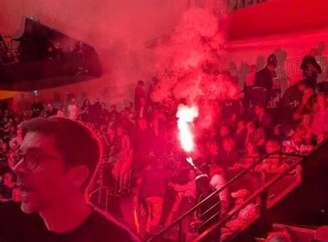 Salonda meşale yakan aktivistler, konseri birkaç kere böldü. Salon yetkilileri, protestocuların salonda uzaklaştırıldığını ve konserin daha sonra yeniden başladığını belirtti. Fransa İçişleri Bakanı Laurent Nunez ise yaptığı açıklamada, 4 kişinin gözaltına alındığını aktardı.