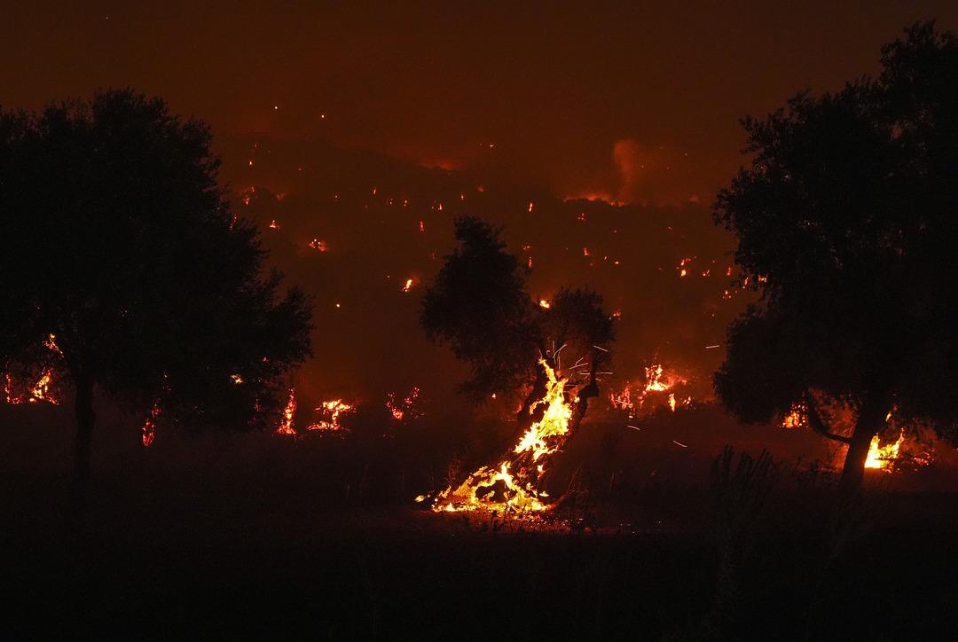 Yeniköy Mahallesi’ndeki zeytin ağaçlarının yandığı görüldü.