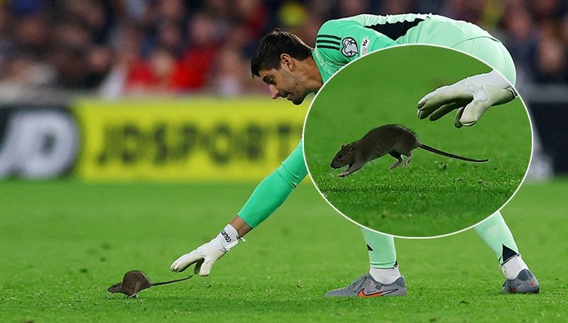 Belçikalı kaleci Courtois’in fareyle ile mücadelesi eğlenceli anlara sahne oldu.