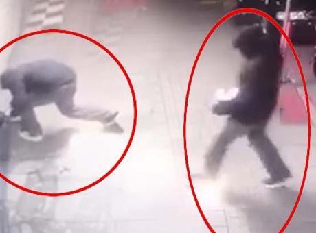 Patlayıcıyı iş yerinin önünde ateşleyip hızla kaçtı! O anlar güvenlik kamerasında